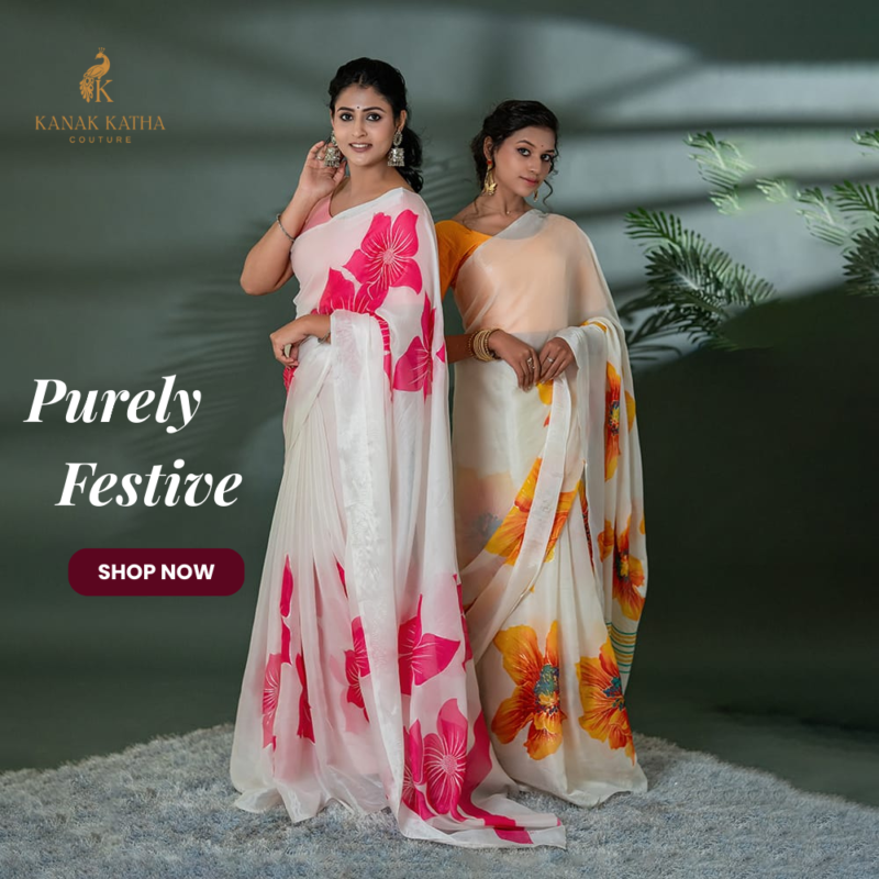 🌸 Kanak Katha Couture • Sarees for Every Moment • 🚚 Delivering Luxury Across India • 💖 Free Shipping • ✨ COD Available • 🎁A Royal Welcome Awaits – Enjoy 5% OFF with Code HELLOKANAK • 🔔 Trending Sarees – Don’t Miss Out! • 💕 Add Elegance to Your Wardrobe Today The Occasion Atelier CURATED EDITS THE PRICE PALETTE ELEGANCE UNFOLDED Instagram