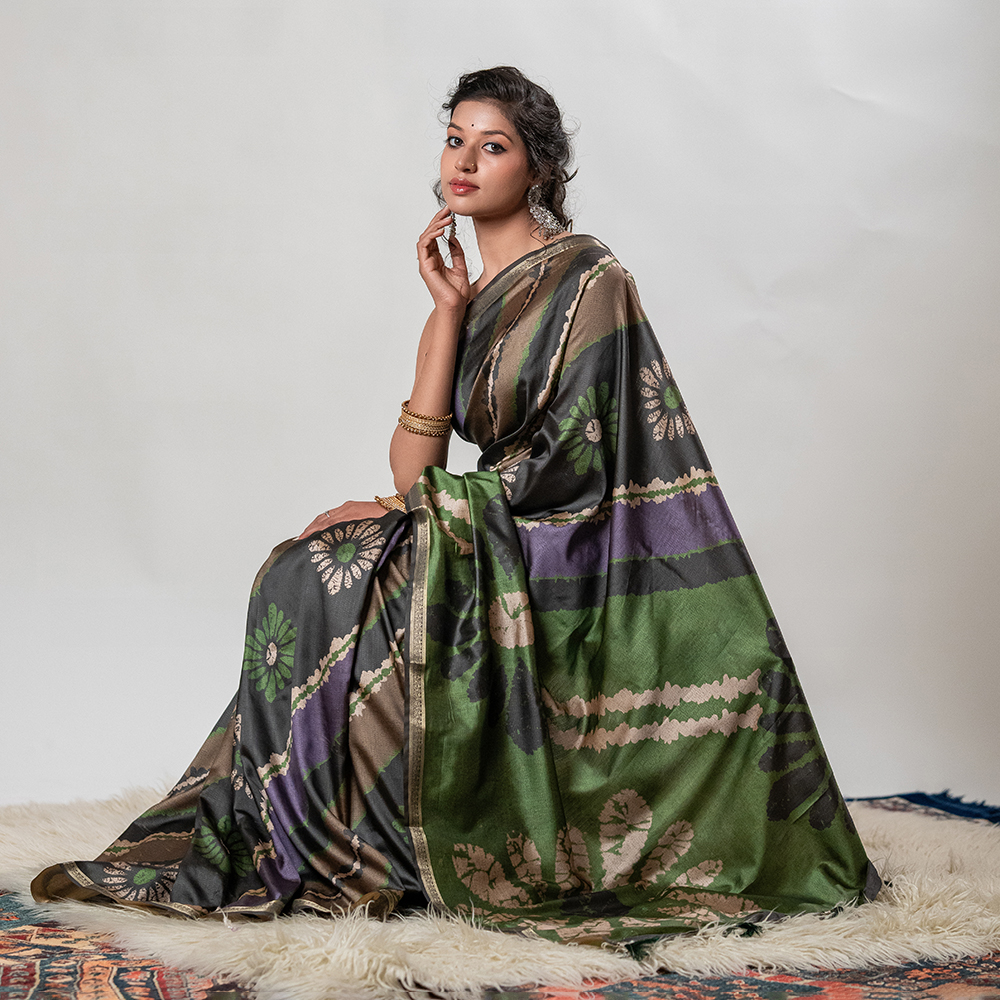 The Boho-Chic Batik – Soft Silk Fusion Saree