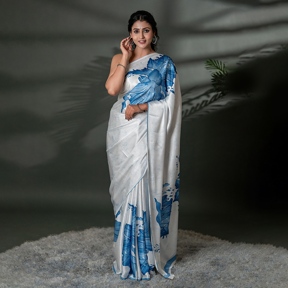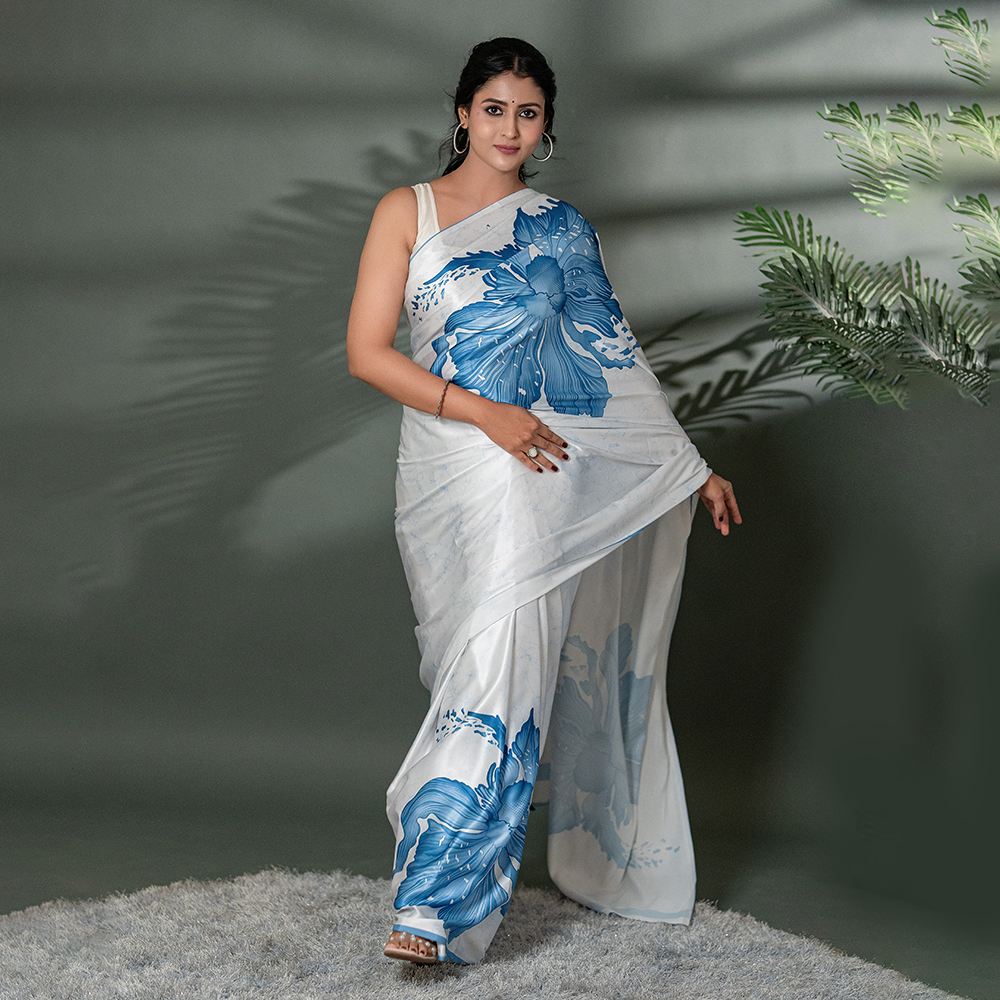 | Description | Step into a world of effortless grace with our The Ethereal Bloom saree. Crafted from premium Japan Satin, this piece features oversized, artistic floral motifs that seem to bloom across the fabric. The high-sheen finish and buttery-soft drape make it a masterpiece of modern ethnic wear. It’s not just a saree; it’s wearable art for the woman who loves to stand out. |